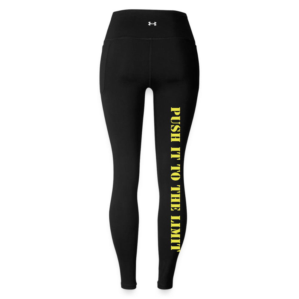 Women's Under armor leggings workout in them, wear them out, make them flashy, make them classy. Or head to gym. You're gonna get some turned heads, trust me. Nice fit. Nice logo, can't go wrong.