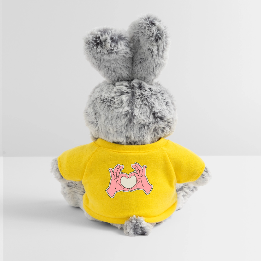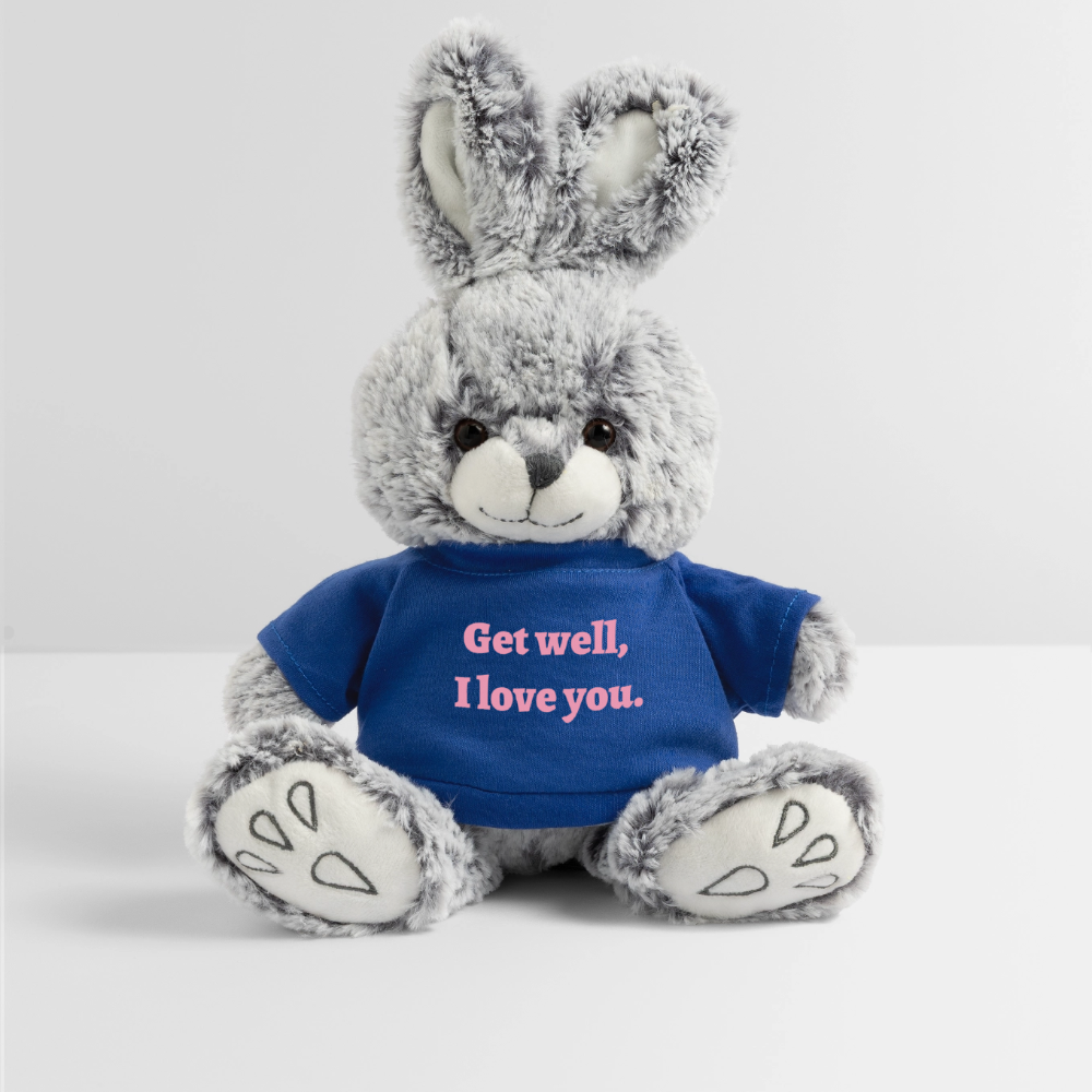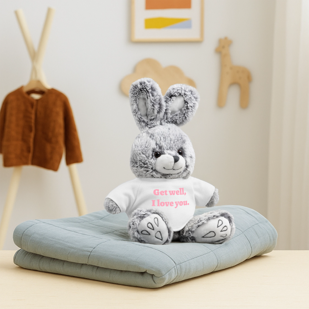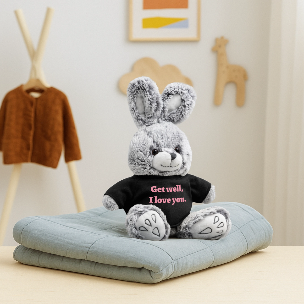 Make every snuggle session uniquely yours with our adorable 14” plush rabbit and their super-cute tiny customizable T-shirt. Create a sentimental design or a personalized message for you or your little ones and give a truly unique gift. Crafted with high-quality materials and a stitched nose and mouth, this cuddly companion is perfect for those who appreciate both comfort and a touch of personalization in their plush friends.